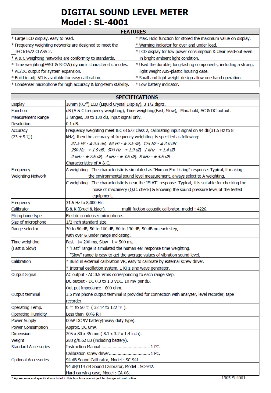 Product Name : SOUND LEVEL METER - SL-4001 噪音計