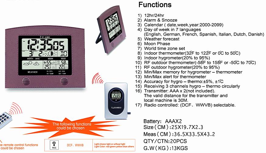 17.Radio controlled:(DCF ,WWVB,MSF) selectable.