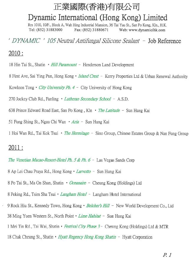 Contact Details : DYNAMIC INTERNATIONAL (HONG KONG) LIMITED