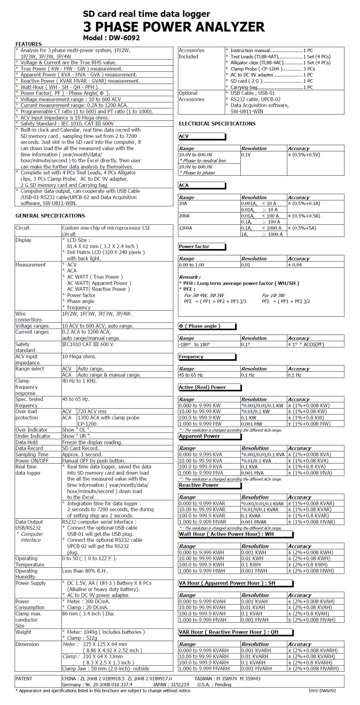 3 PHASE POWER ANALYZER - DW-6092  三相電力分析儀