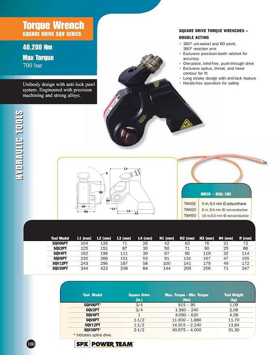 Product Name : Torque Wrenchg - Square Drive SQV Series - 40.200NM - Max Torque - 700 bar