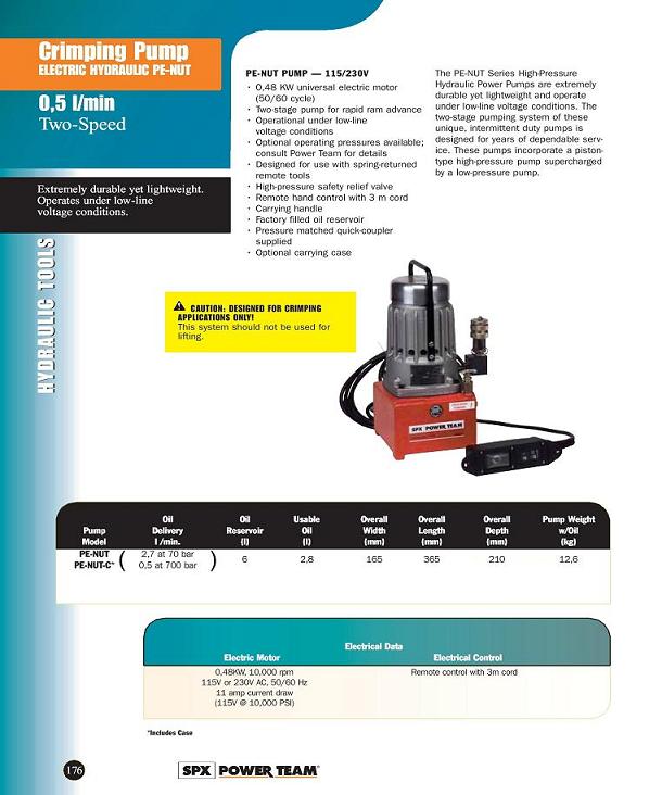 Crimping Pump - Electric Hydraulic. PE-NUT - 0.5 1-min  Two Speed