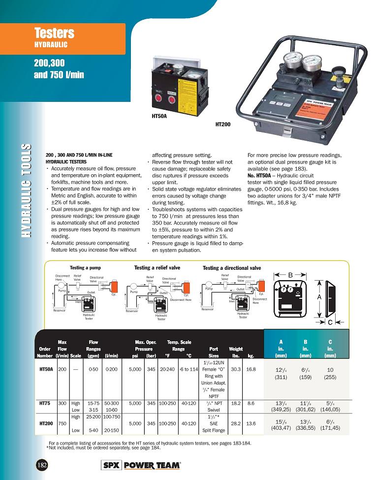 Hydraulic Testers - Testers 200,300,750 1/Min