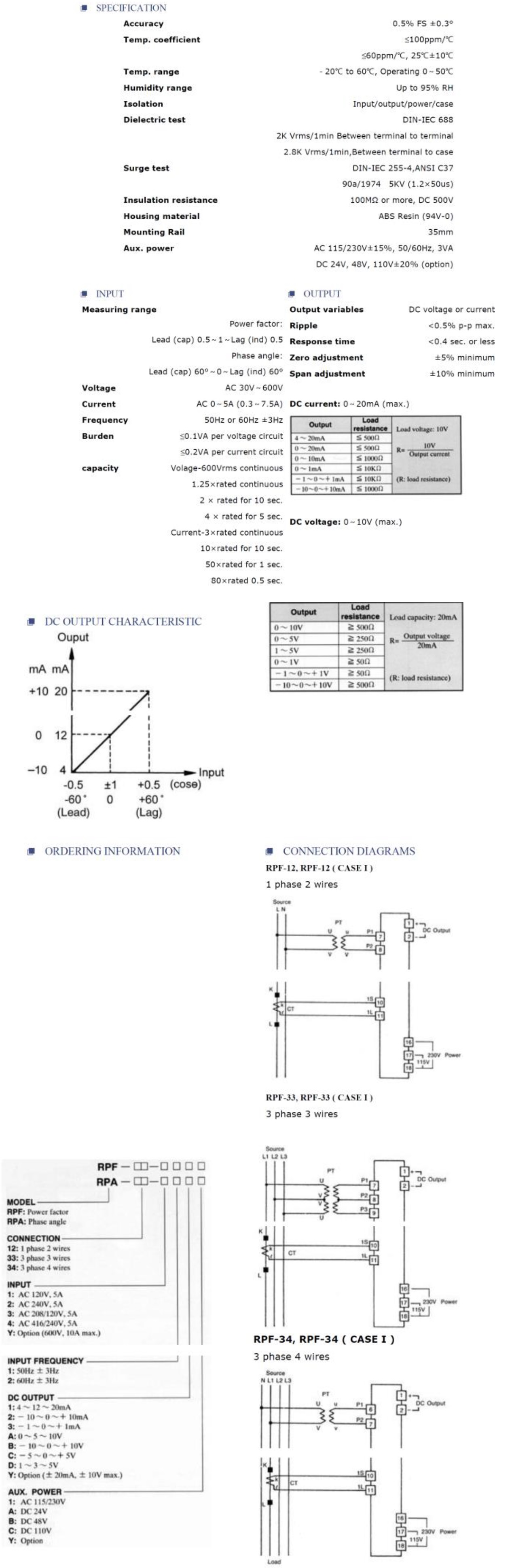 Product Name : 功因、角度轉換器 Power Factor and Phase Angle Transducer - RPF, RPA
