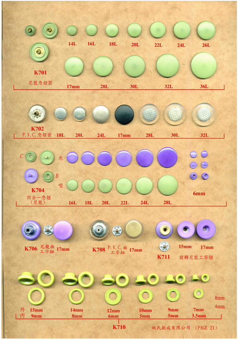 P 20 四合一膠喼鈕,膠雞眼(Plastic Snap Button/Eyelet)