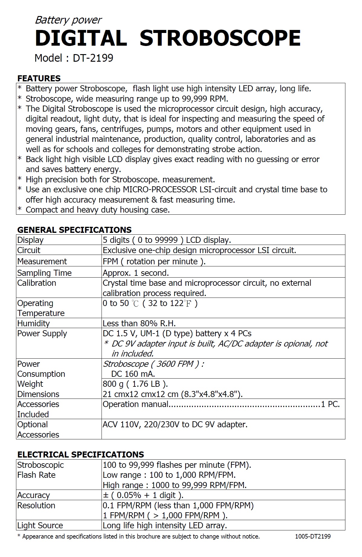 Product Name : STROBOSCOPE - DT-2199 轉速計