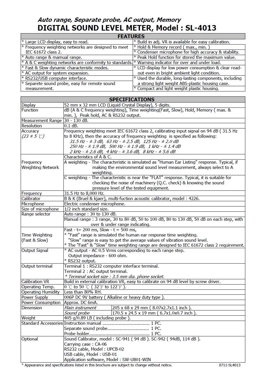 Product Name : SOUND LEVEL METER - SL-4013 噪音計