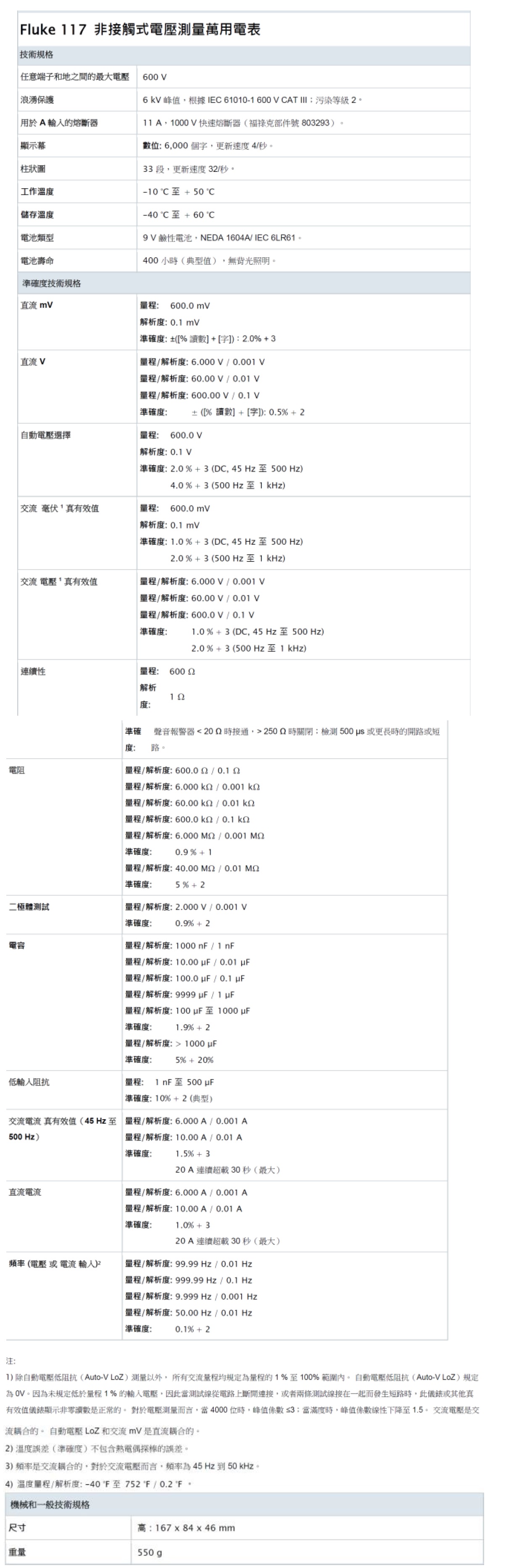 Product Name : Fluke 117 非接觸式電壓測量萬用電表