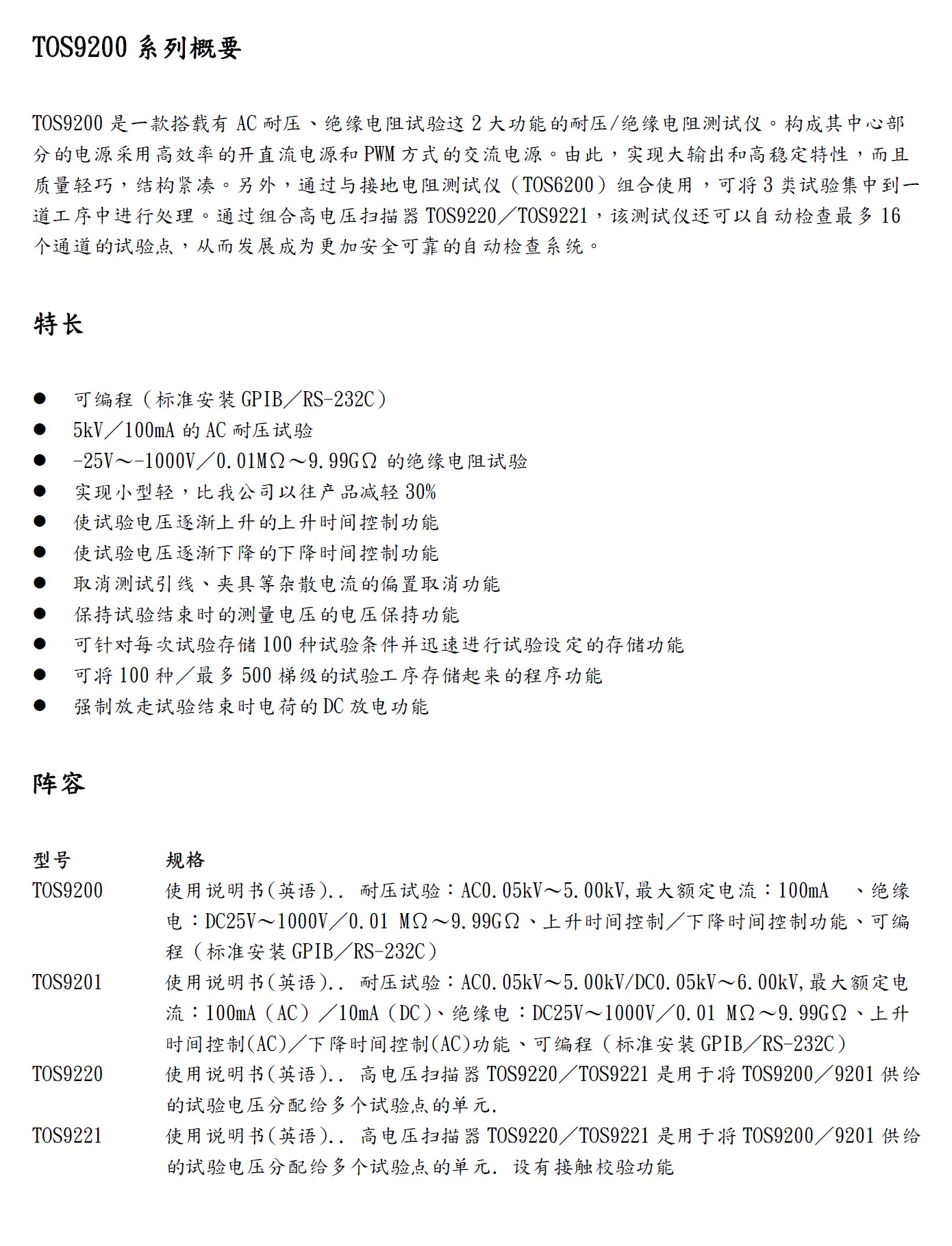 Product Name : 耐壓绝缘測驗儀 - TOS9200, TOS9201, TOS9220, TOS9221
