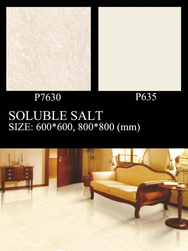 polished porcelain tiles, in soluble salt series.