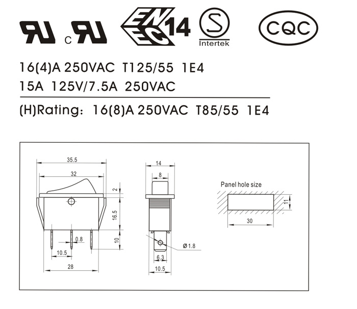 (H): 16(8)A 250VAC T85/55 1E4