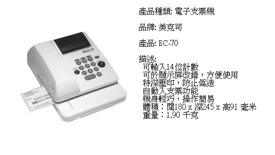 - Max #EC-30A (10位+小數2位) / 電子支票機