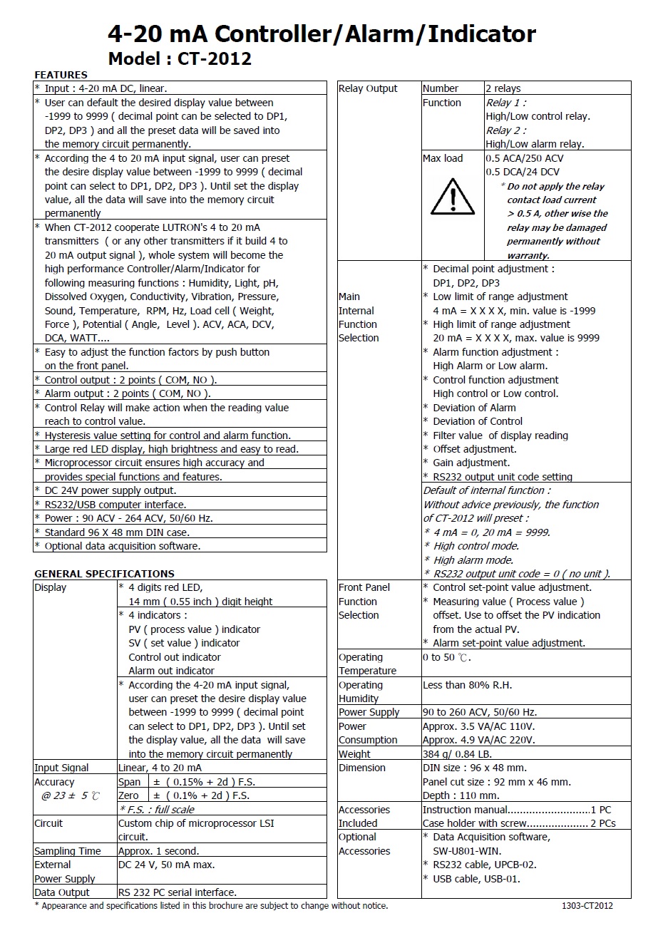 * When CT-2012 cooperate LUTRON's 4 to 20 mA transmitters, whole